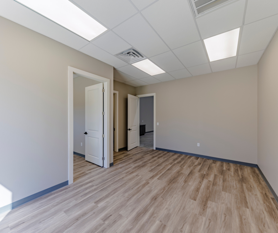Every suite includes a finished 402 SF office layout with reception, a private 10×10 office, and a restroom. The design offers just enough front-end space for your team or customers, with the rest left open and efficient for warehouse, equipment, or storage needs.